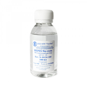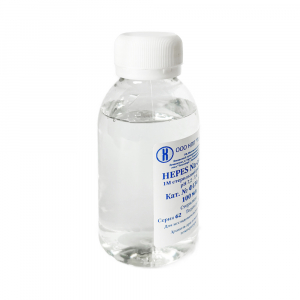 (C8H17N2O4S Na, М=260,29) является органическим буферным агентом. Раствор Na-HEPES широко используется в культуральной техникев качестве мягкого буфера для поддержания физиологических значений рН в системах культивирования клеток и тканей in vitro.