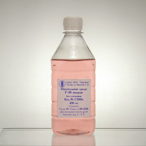 Способ применения: Перед применением при необходимости во флакон со средой (450 мл) добавить 146 мг сухого стерильного L-глутамина (кат. № Ф032) и дополнительно обогатить среду компонентами, специфичными для условий конкретного анализа. Для проведения стерильных работ вскрытие флакона проводить в асептических условиях.