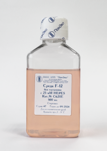 The medium is a mixture of inorganic salts, amino acids, vitamins, glucose and phenolic red dissolved in purified water, sterilized by filtration through filters with pore size of 0.22 microns. The medium conteins 25 mmol of HEPES and has a high buffer capacity.