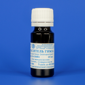 Представляет собой концентрированный раствор красителя на основе смеси азур-эозина и метиленового синего (Гимза, Merck), предназначенный для микроскопии, окраски клеточных ядер и хромосом.