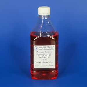 Хенкса раствор с феноловым красным, без ионов Mg2+ и Са2+, 450 мл, ПЭТ